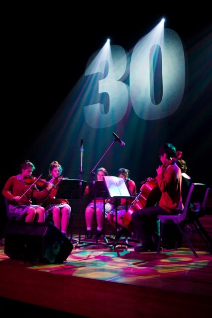 Oxley Speech Night 3.5m tallGallery: ArchitecturalDescription: 3.5 metre tall polystyrene number 30. Painted white and silver glittered to pick up the lighting. The 30 has an internal strengthening structure and comes apart to negotiate doorways.