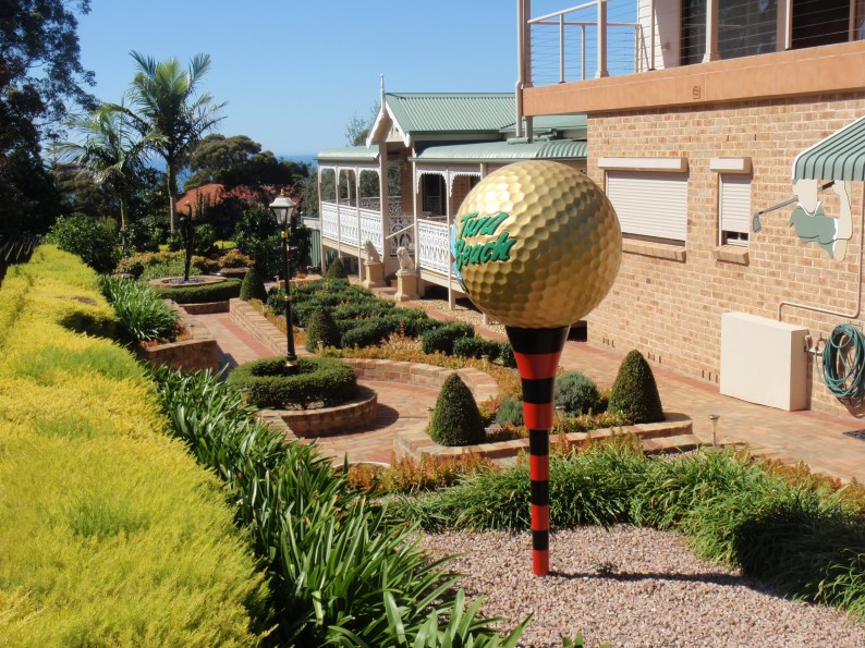 Golf Ball and Tee on Site. Our customer had the fun of painting them to their own colour scheme and installing the feature. Polystyrene with Polyurethane Coating.